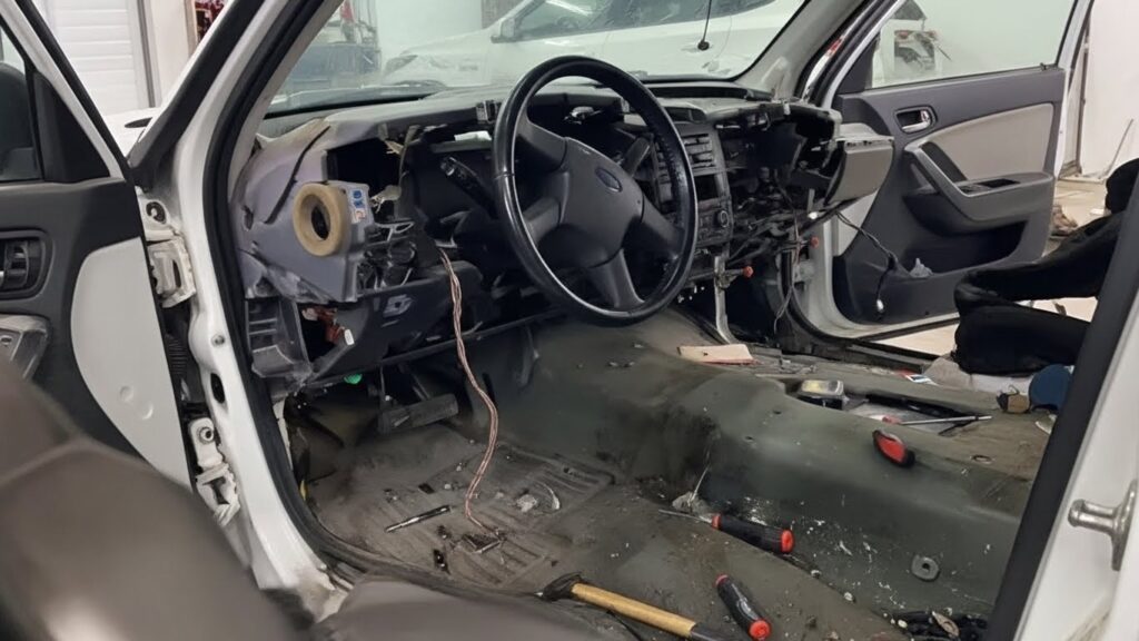 - Remove dash pad and trim panels — unscrew or unclip all trim pieces, including around glovebox, radio, vents, and instrument cluster.