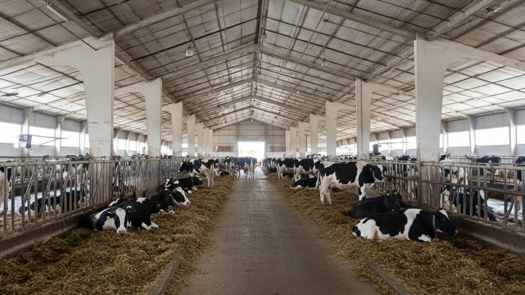As the cows mature, the scene moves to the farm’s modern infrastructure: clean barns, automated feeding systems, ventilation and waste-management — all showing how responsible farming uses technology to maintain high standards. This isn’t the old rustic farm with open pens — this is modern agriculture where each step is tracked, and animal care is systematized.